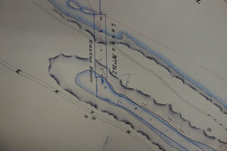 Map of the entire proposed route through Devil Lake dated 1905: Parks Canada